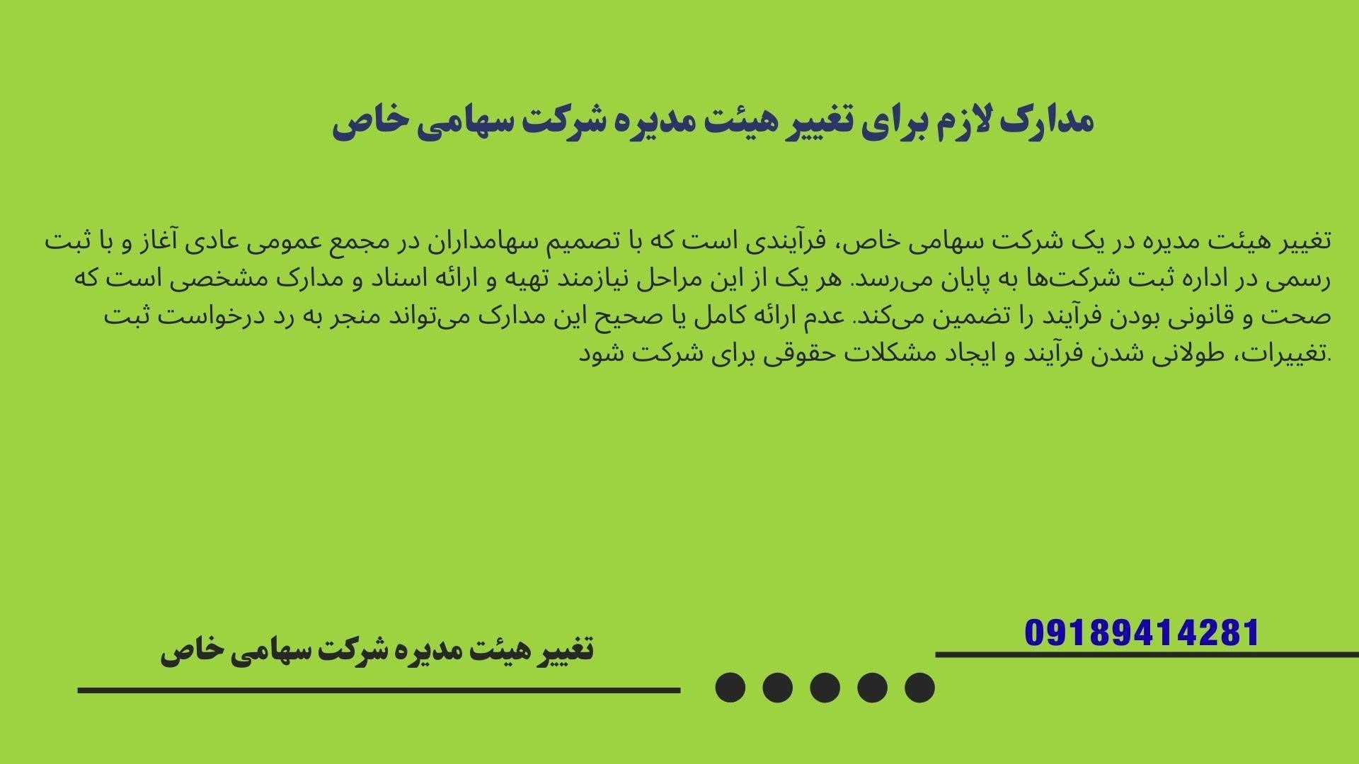 جهت انتخاب و یا تغییر هیات مدیره شرکت بهتر است به سایت تک نیک ثبت مراجعه کنید، و از کارسناسان این تیم مشاوره رایگان دریافت کنید. اینم شماره موبایلشون 09189414281